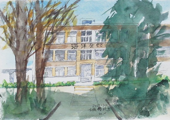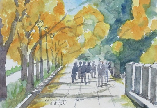 横浜の銀杏を描いた11月が終わり、今月は横浜の港の方を描きました。いつも通り写真を撮って描きました。