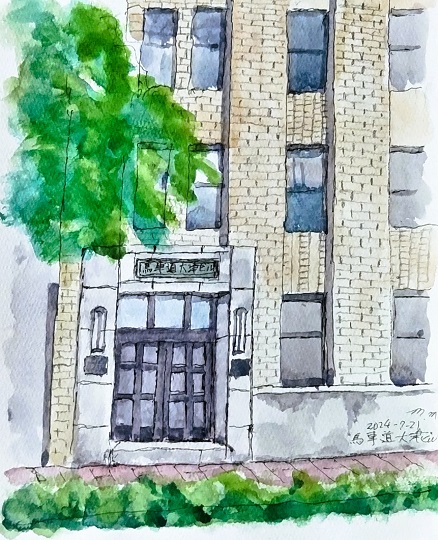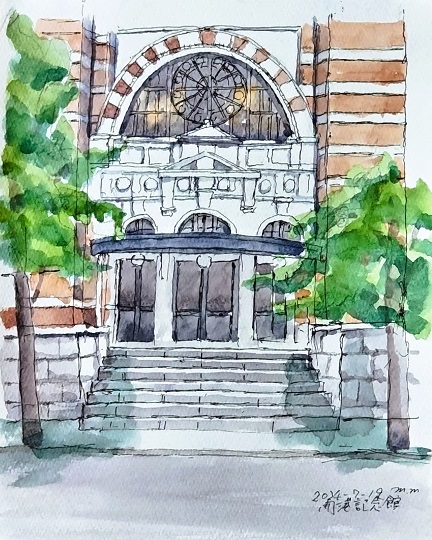 案内をみてもどこのビルか分かりません。前々日にこの建物側から斜め向かいの開港記念会館を描いた場所でした。 -